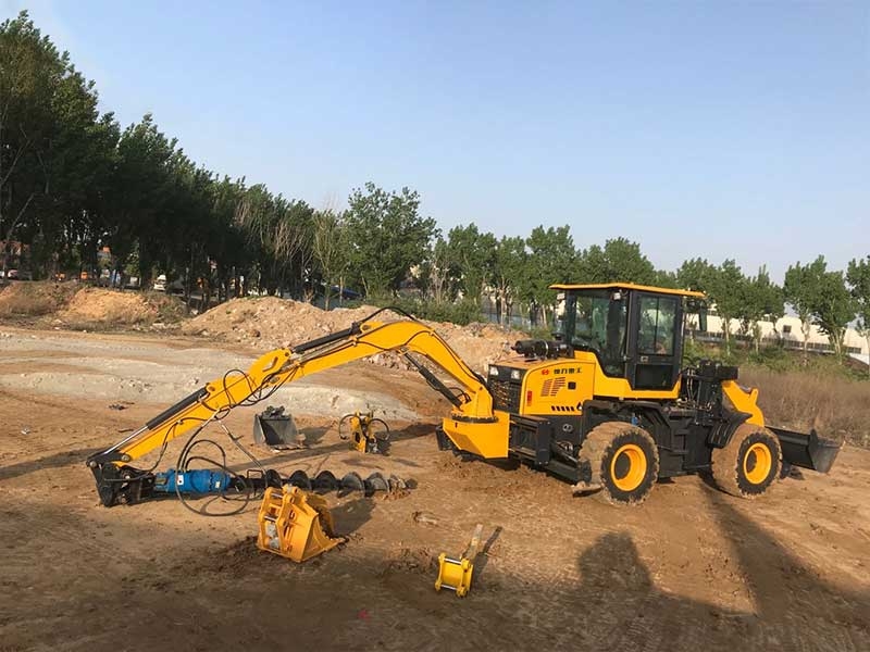 神力挖掘裝載機是由三臺建筑設(shè)備組成的單一裝置。俗稱“兩頭忙”。施工時,操作手只需轉(zhuǎn)動一下座椅,就可以轉(zhuǎn)變工作端。挖掘裝載機主要工作是開挖溝渠以便排布管道和地下線纜,為建筑物奠基并建立排水系統(tǒng)。 一臺挖掘裝載機包含了: 動力總成,裝載端,挖掘端 。每臺設(shè)備都是針對特定類型的工作而設(shè)計的。在典型的建筑工地上,挖掘機操作員通常需要使用所有這三個組成部分才能完成工作。 挖掘裝載機的核心結(jié)構(gòu)就是動力總成。挖掘裝載機的動力總成設(shè)計可以在各種崎嶇的地形上自由奔跑。具有強大的渦輪增壓柴油機、大號深齒輪胎和配有駕駛控制裝置(方向盤、制動器等)的駕駛室。
